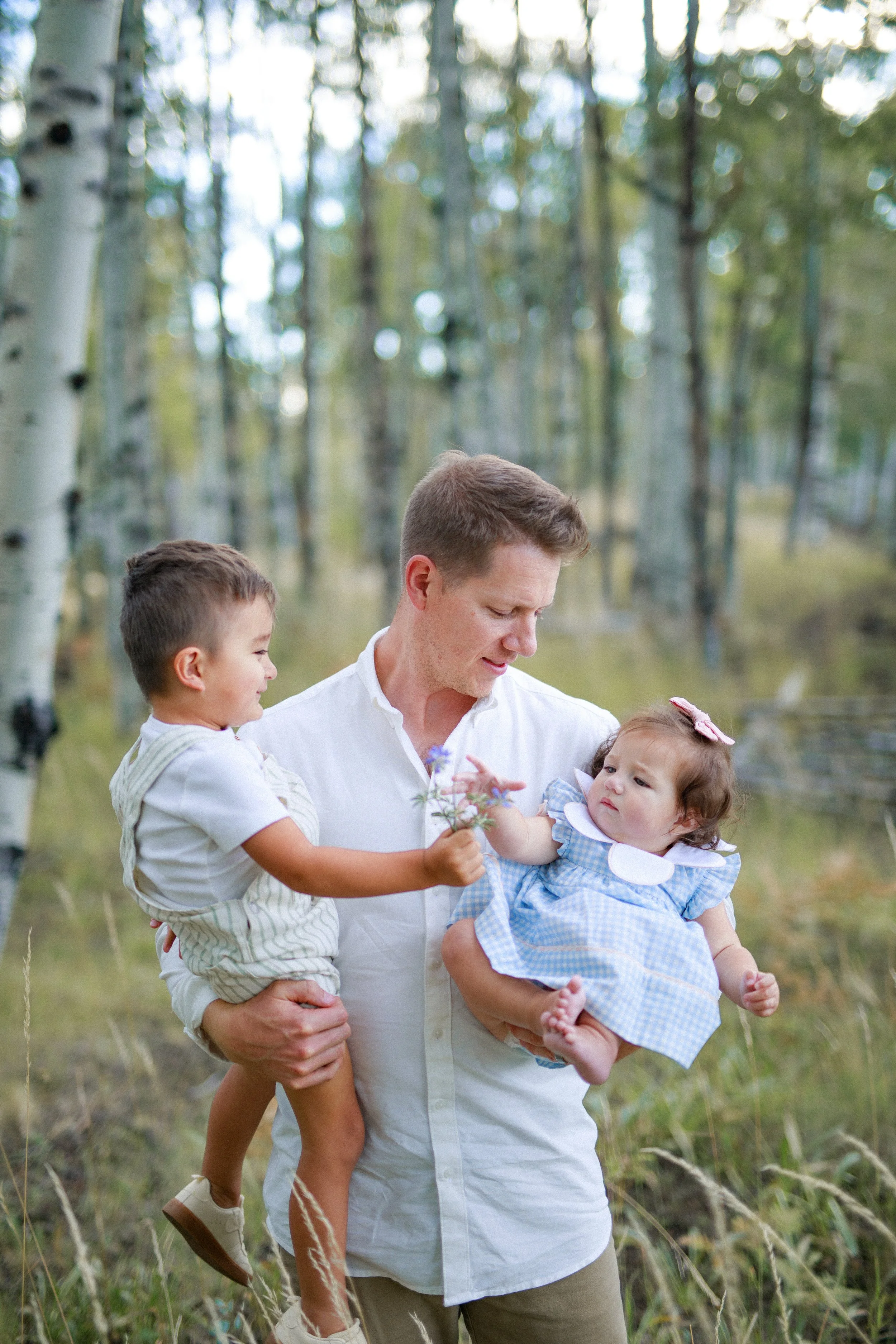 We had the absolute best time with this sweet family. Flagstaff was showing off with the perfect weather and sunshine. The little ones got to explore while we documented sweet moments. How beautiful are the little ones. They made this session so fun with their sweet personalities. The little girls beautiful bright blue eyes stole the show. And the photos of mom and dad are just so perfect and documented how in love they are.